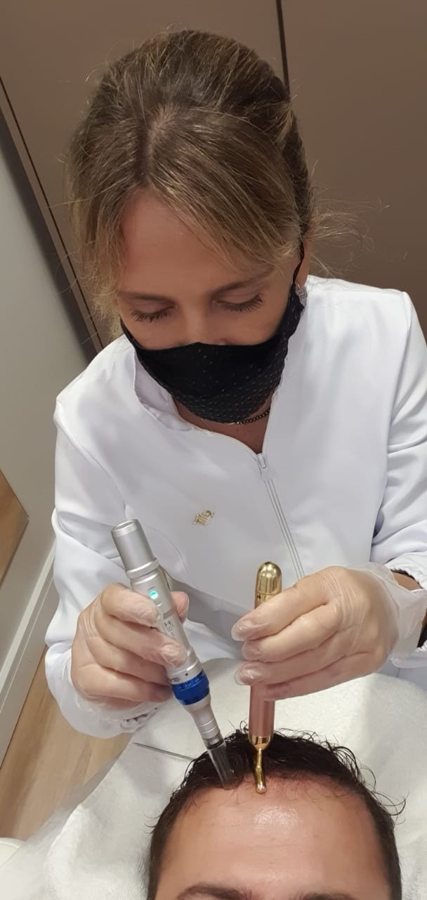 O microagulhamento é um tratamento também usado para a queda e a calvície o microagulhamento capilar é uma técnica que utiliza micro agulhas vibratória que fazem microperfurações no couro cabeludo fazendo com que haja um estímulo da circulação sanguínea aumentando a vasodilatação melhorando a oxigenação e aumentando a permeação de ativos dentro do folículo a técnica é potencializada pois conseguimos fazer uma aplicação de substâncias específicas para ajudar o tratamento capilar com minoxidil finasterida vitaminas e fatores de crescimento que penetra no couro cabeludo através desse microperfurações fazendo com que haja uma significativa diminuição da queda um aumento deste crescimento e fortalecimento dos fios nós utilizamos o microagulhamento dentro de um protocolo que depende de cada caso para saber o número apropriado de sessões.